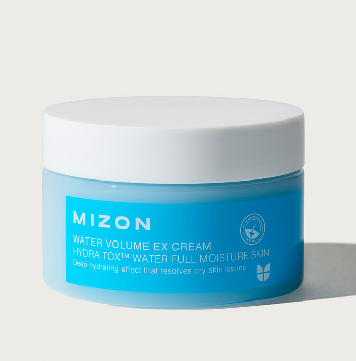 Ky hidratues përdor teknologjinë e patentuar Hydra Tox për të aktivizuar faktorët natyralë hidratues që synojnë rigjenerimin e barrierës së lagështisë në lëkurë. Kremi Mizon Water Volume EX ribalancon prodhimin e vajit të lëkurës, duke rafinuar lëkurën dhe duke rikthyer lagështinë në zonat e thata dhe të dehidratuara të fytyrës pa mbingarkuar ose bllokuar poret. Formon një barrierë hidratuese në lëkurë, kështu që ajo qëndron e butë dhe e mëndafshtë gjatë gjithë ditës. Përthithet me lehtësi të habitshme, duke mos lënë ndjesi yndyre, ngjitjeje apo të rëndë. Është cruelty-free dhe përmban acid hyaluronic (Sodium Hyaluronate) dhe Collagen Marine (Hydrolyzed Collagen).