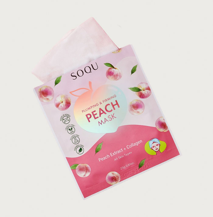 SOQU PLUMPING & FIRMONG PEACH MASK kombinon vetitë rinovuese dhe cilësinë e lartë të kozmetikës koreane në një produkt efektiv për ata që duan një lëkurë të mëndafshtë. Ekstrakti i pjeshkës qetëson lëkurën, ndërsa përcon lagështi thellë në lëkurë duke ndihmuar barrierën e lëkurës të jetë me e fortë . Një përzierje e ekstraktit të pjeshkës dhe kolagjenit rigjallëron lëkurën, duke dhuruar një lëkurë më të tendosur, të ushqyer dhe më rinore.