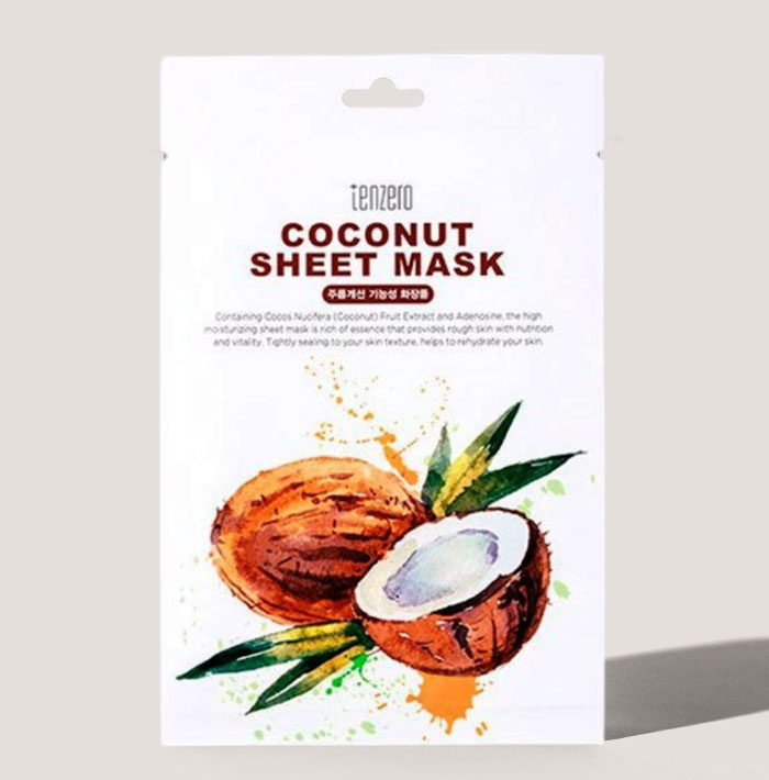 Një maskë pëlhure me ekstrakt kokosi ruan lëkurën në gjendje perfekte, rigjeneron, ushqen, hidraton dhe rrit elasticitetin, si dhe barrierën mbrojtëse të lëkurës. Kujdeset që lëkura të jetë e hidratuar por fal adenosinës përmirëson edhe rrudhat dhe linjat e imta të mimikës.