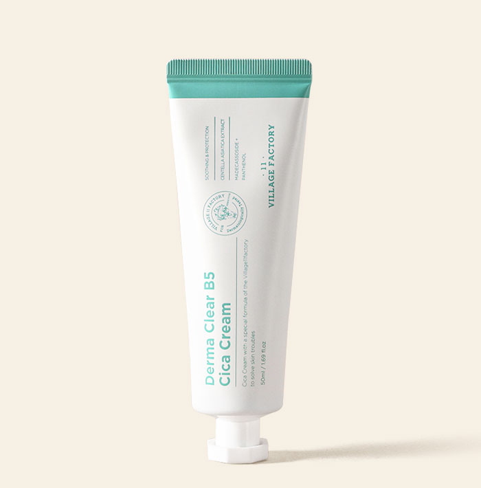 I përbërë me centella asiatica, panthenol dhe përbërës të tjerë hidratues bimor, Village 11 Factory Derma Clear B5 Cica Cream qetëson lëkurën dhe ndihmon në përshpejtimin e riparimit të barrierës së saj.